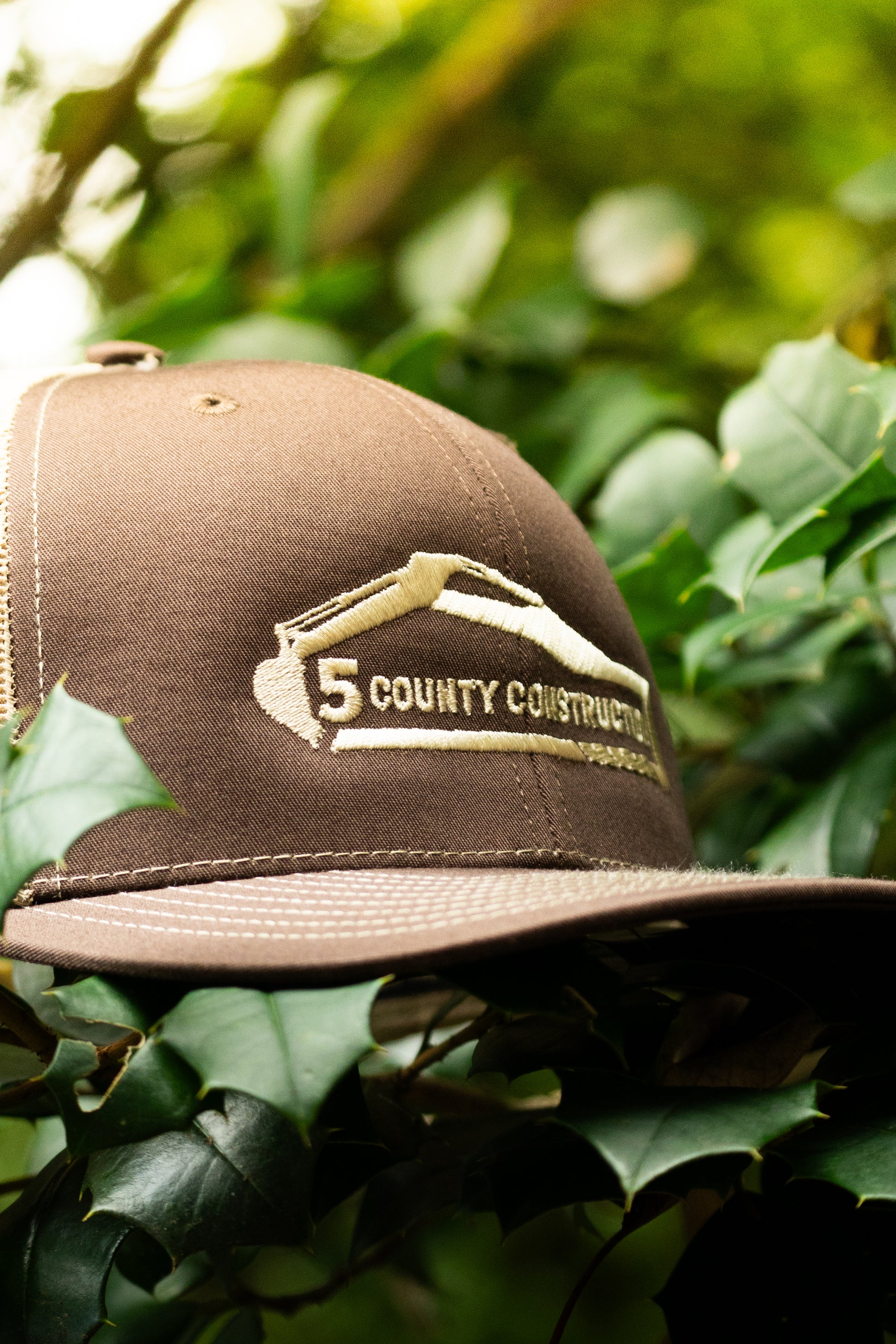Work hard, look sharp. The 5 County Construction Trucker Hat features the classic Richardson 112 fit—trusted by crews and tradesmen everywhere. With a brown front panel, khaki mesh back, and a bold tan 5 County logo, this hat brings together comfort, breathability, and rugged style for long days on the job or weekends off the clock.